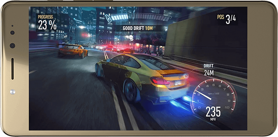 The 1920×1080 pixels resolution with 403 PPI enable you to stream your favorites in vivid clarity and the 2.5D curved glass lends your 10.or E a smooth edge.