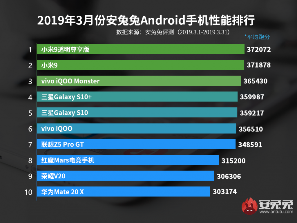 AnTuTu’s top 10 best performing Android smartphones list for March 2019