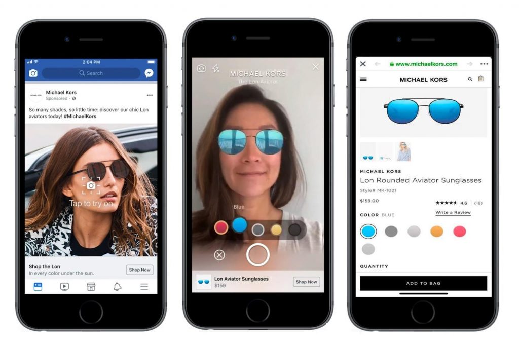Michael Kors is the first brand to have AR Ads in the News Feed, where it is going to allow people to browse different sunglasses, use the camera to “put them on” and then buy a pair if they like it — all within an ad. Facebook says Sephora, NYX Professional Makeup, Bobbi Brown, Pottery Barn, Wayfair, and King plan their own tests for later this summer.