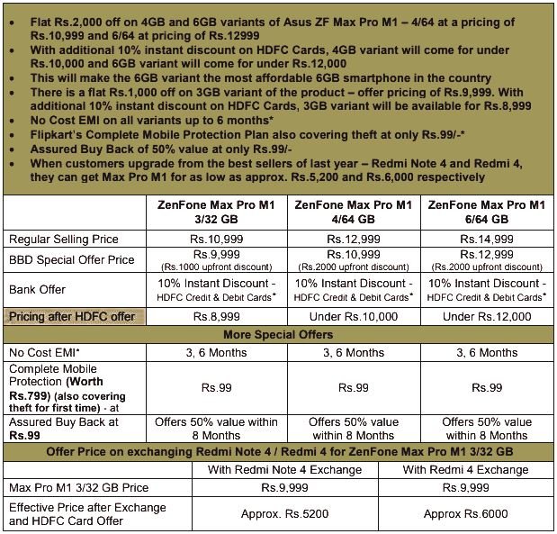 Flipkart Big Billion Day Sale – Asus Zenfone Max Pro M1 Offer