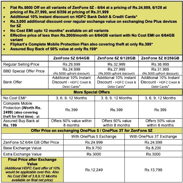 Flipkart Big Billion Day Sale – Asus Zenfone 5Z Offer