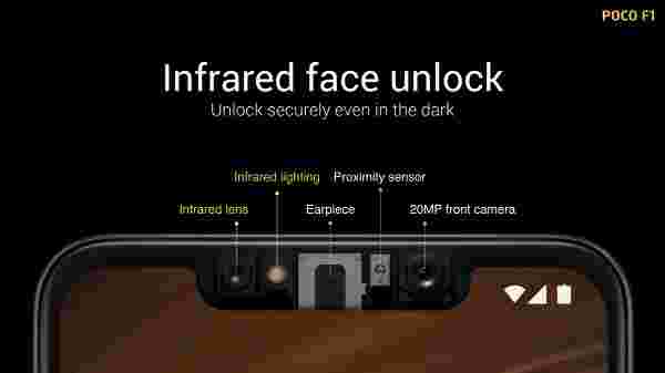 The Poco F1 features an IR blaster assisted face-unlock. Even though it might not be as secure as Apple iPhone X’s face unlock feature, it is especially at the price of Rs 20,999. Surprisingly the face unlock works even in low light conditions, unlike other phones. The Face Unlock feature on the Poco F1 is being achieved by using the 20 MP front-facing camera with the IR blaster sensor.