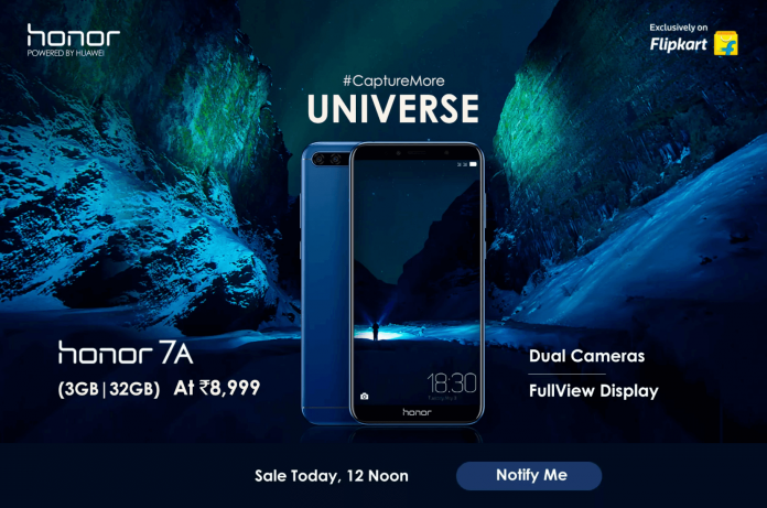 Huawei’s sub-brand Honor which is a rival competitor of Xiaomi launches smartphones which are loaded with neat features at affordable prices. The latest budget smartphone, Honor 7A features dual rear cameras, face unlock feature and more. The 7A is exclusively available via Flipkart, and it is going on sale today at 12:00 PM.