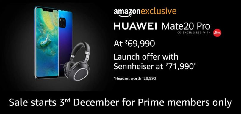 The new flagship Huawei Mate 20 Pro has been priced at Rs 69,990 in India. The smartphone will be going on sale exclusively via Amazon India on December 4. Amazon Prime members can buy the smartphone early on December 3.