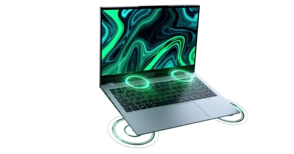 Infinix INBook X1 features a full-metal body. It features a 14-inch screen with a Full HD IPS display (1080p resolution), an aspect ratio of 16:9, and a brightness of 300 nits. It can also tilt up to 180 degrees for optimal flexibility.