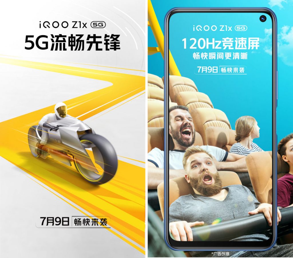 iQOO confirmed that it will launch its much-rumored iQOO Z1x 5G on July 9 in China. According to an official teaser, the iQOO Z1x 5G will be announced on July 9 and the teaser also highlights the phone’s design.