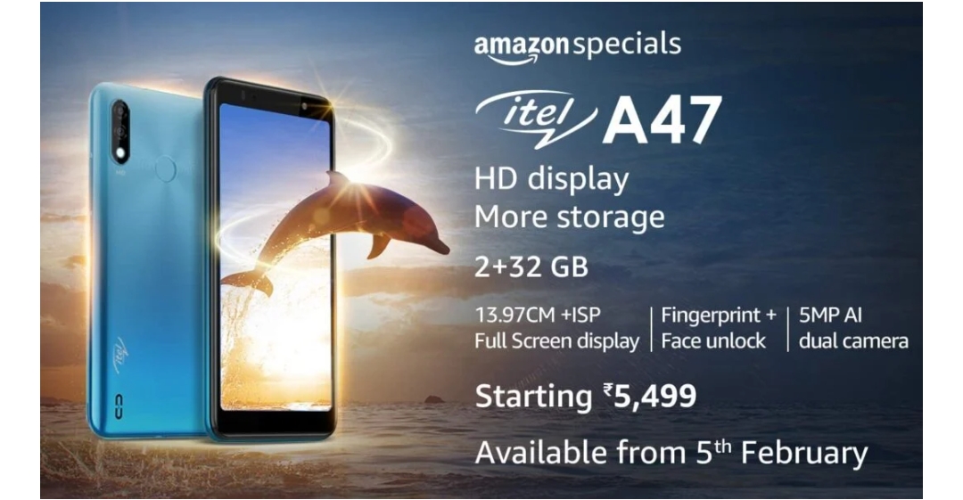 Priced at Rs. 5499, itel A47 will be available for buyers in Ice Lake Blue and Cosmic Purple colours with a gradient finish. The phone will go on sale via Amazon.in from February 5th.