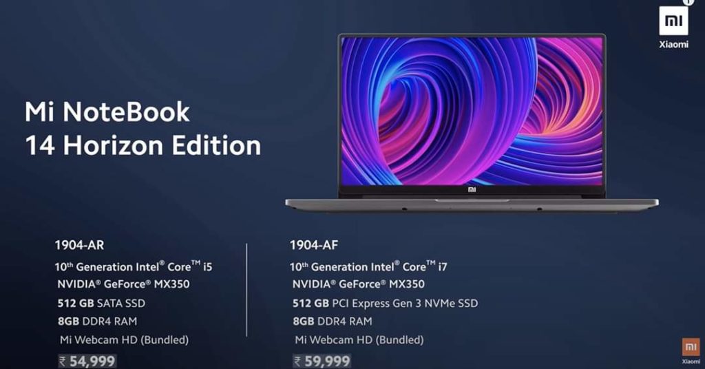 Mi NoteBook 14 and Mi NoteBook 14 Horizon Edition Pricing and availability