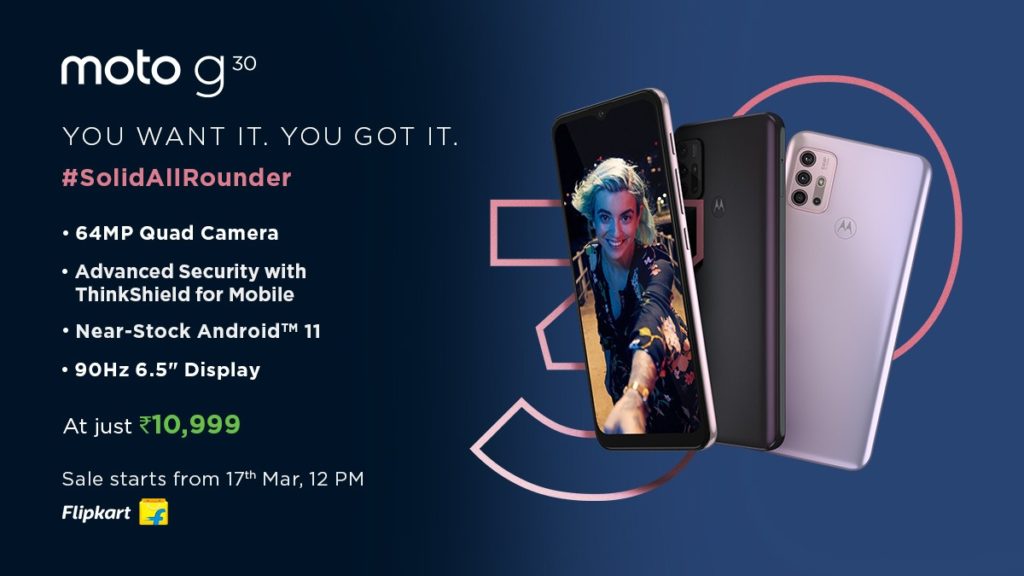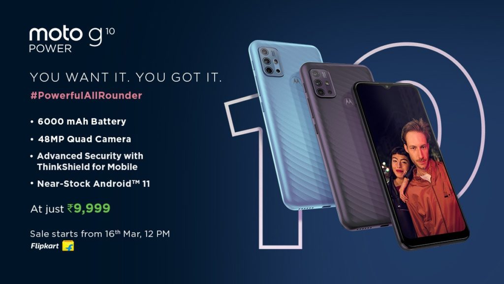 The Moto G10 Power will be available for Rs 9,999 for the single 4GB+64GB variant while the Moto G30 is priced at Rs 10,999 for the 4GB/64GB variant. The Moto G10 Power will go on sale starting 16th March, 12 pm on Flipkart whereas the Moto G30 will be available starting 17th March, 12 pm on Flipkart.