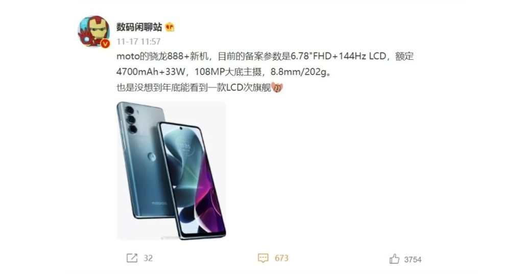 The Motorola Edge S30 is expected to be launched in China soon by Motorola. Lenovo‘s product manager recently confirmed that Motorola plans to launch two new flagship smartphones, one of which will have an LCD screen. Now, specifications of the upcoming Motorola Edge S30 have been revealed by the reliable tipster Digital Chat Station on the Chinese micro-blogging platform Weibo.