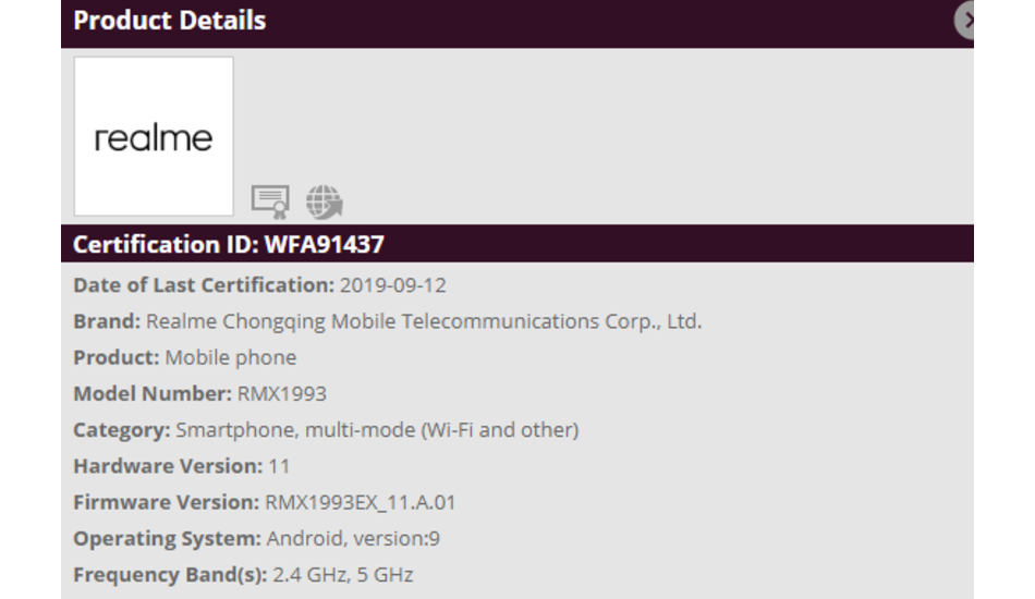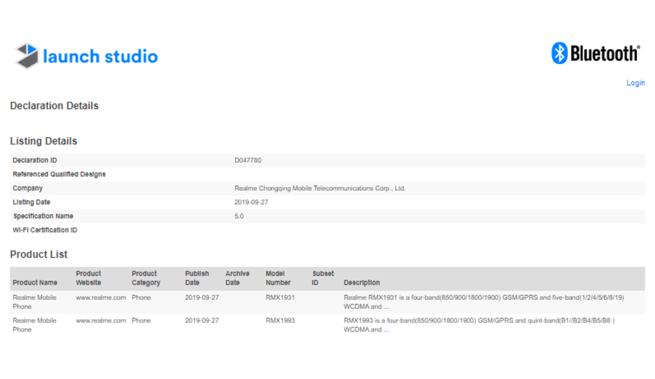 While the name of the Realme RMX1931 smartphone has not been confirmed at the moment, the listing of the handset suggests that it could arrive with Bluetooth 5.0 connectivity.