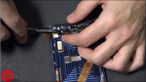 The Nokia 9 PureView teardown video takes us through a step-by-step process of the teardown. Where You’ll need a heat gun, and pry tools to open up the glass back of the device, revealing the internals. Removing the back reveals the entire internals, including the thirteen Philips screws holding a plastic cover and the wireless charger coil. On removing the back, you’ll notice that the glass panel is firmly fixed to the frame with lots of adhesive, which is to improve its water resistance. Removing the Philips screws allows you to disassemble the back cover upon which the battery can also be disconnected and removed.