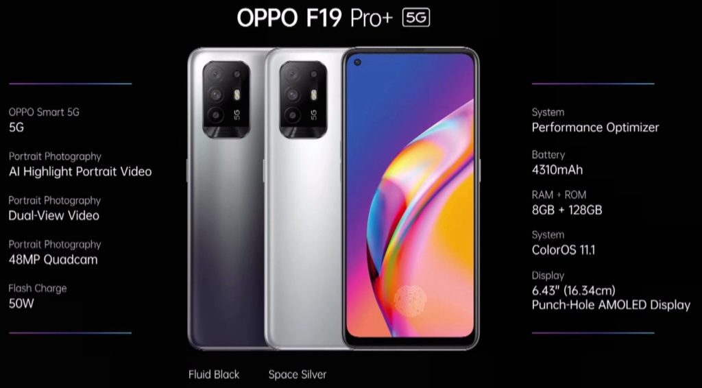The device is fitted with a 6.43-inch full-HD+ Super AMOLED punch-hole display that has a screen resolution of 2400 x 1800 pixels and a 20:9 aspect ratio. MediaTek 800U chipset-powered Oppo F19 Pro+ 5G comes with 8GB of RAM and 128GB internal storage.