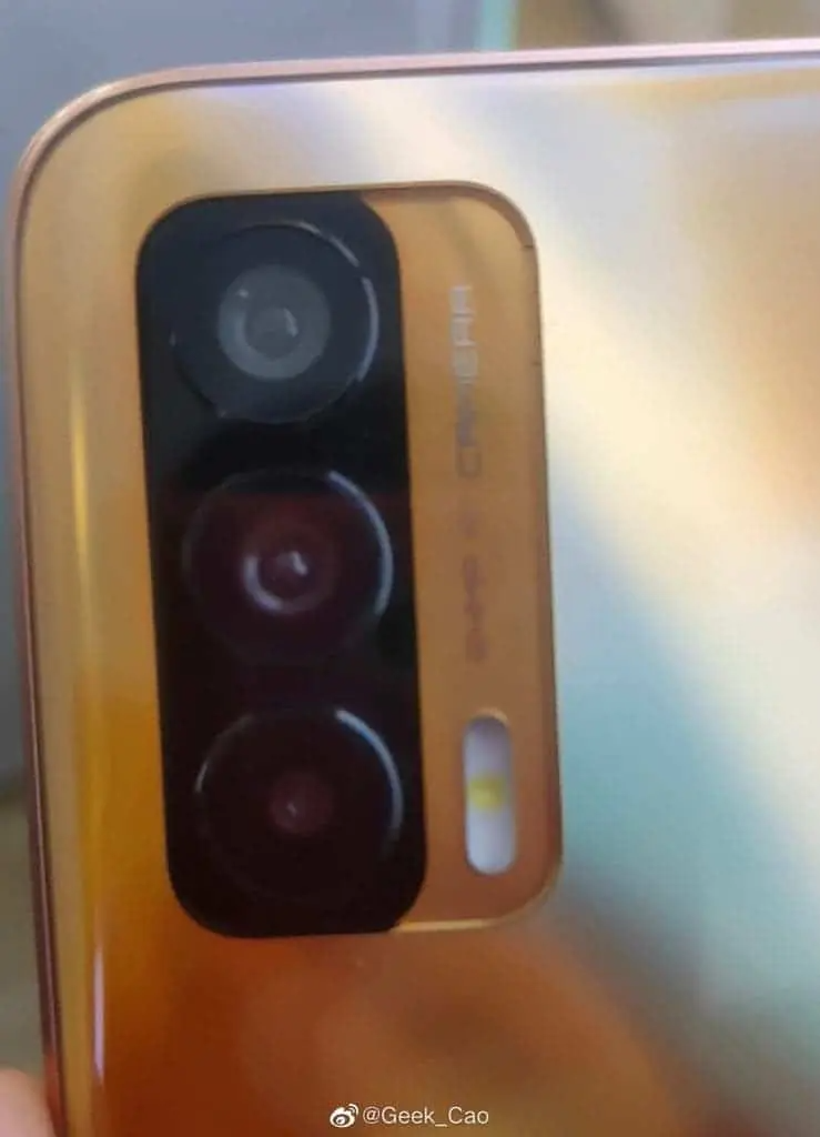 Leaked on Weibo by the tipster (@Geek_Cao), the images show the phone’s rear design. At the back, the device has a rectangular cutout that houses triple cameras. The phone is said to sport a 64MP main camera. As per the leaked live photos, the phone has a “Dare to leap” slogan on the back. It has a design similar to that of Realme X7 Pro. The slogan also has been confirmed by the company Koi-themed teaser that confirmed the availability of a Snapdragon 888.