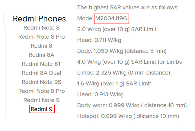 Going by the Redmi 9 listing, the phone will have model number M2004J19G and Head SAR of 0.711 W/kg and Body SAR of 1.059 W/kg. Unfortunately, the listing doesn’t reveal the specifications or price of the upcoming budget smartphone.
