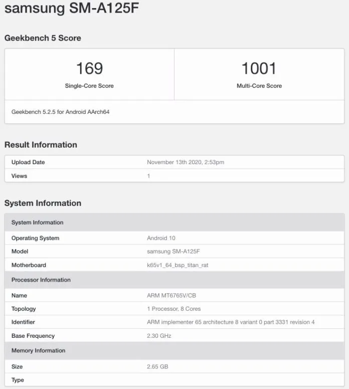 As per the listing, the upcoming Galaxy A12 phone will get its power from the octa-core MediaTek Helio P35 (MT6765) processor with a base frequency of 2.30GHz. The chipset will be paired with 3GB of RAM. Further, the phone will be running on Android 10 OS according to the benchmarks. For a single-core test, the handset managed to score 169 points and for a multi-core test, it had a score of 1001.
