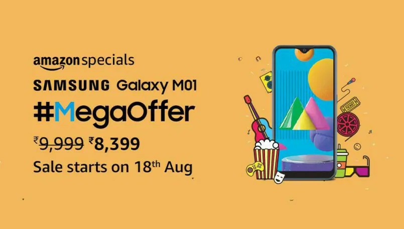 Samsung making the Galaxy M01 smartphone available for a discounted price of Rs 8,399, as against the current, original price of Rs 8,999. Interested customers can save Rs 600 directly on buying the Galaxy M01 smartphone. The offer is termed ‘#MegaOffer‘ offer. This will be the limited-period offer and it will remain valid for the only few days starting from August 18th.