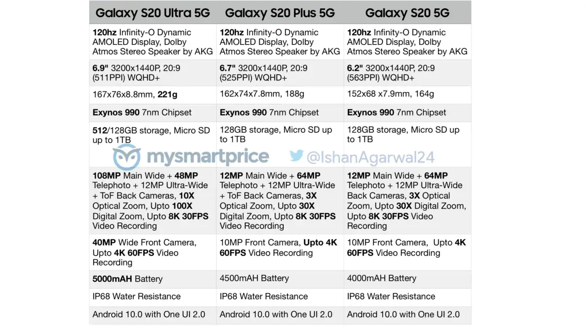 On the camera front, both the Galaxy S20 and S20+ will be coming with a 12-megapixel primary camera, a 12-megapixel ultra-wide-angle camera, and a 64-megapixel telephoto shooter (most likely backed by the second generation ISOCELL GW2 sensor). The camera features on both the phone will include 3x optical zoom, 30x digital zoom, and 8K video capture at 30fps. On the front sits a 10-megapixel selfie snapper with 4K 40fps video capture support.