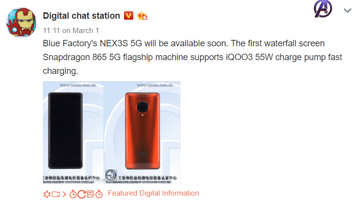On the specifications front, the Vivo NEX 3S 5G will be the first Snapdragon 865 handset with a waterfall screen. This device also supports 55W pump fast charging. The TENAA listing further confirms that the handset will sport an on-screen fingerprint sensor. It supports dual-5G SA/NSA networks as well as bands 41, 78, and 79.