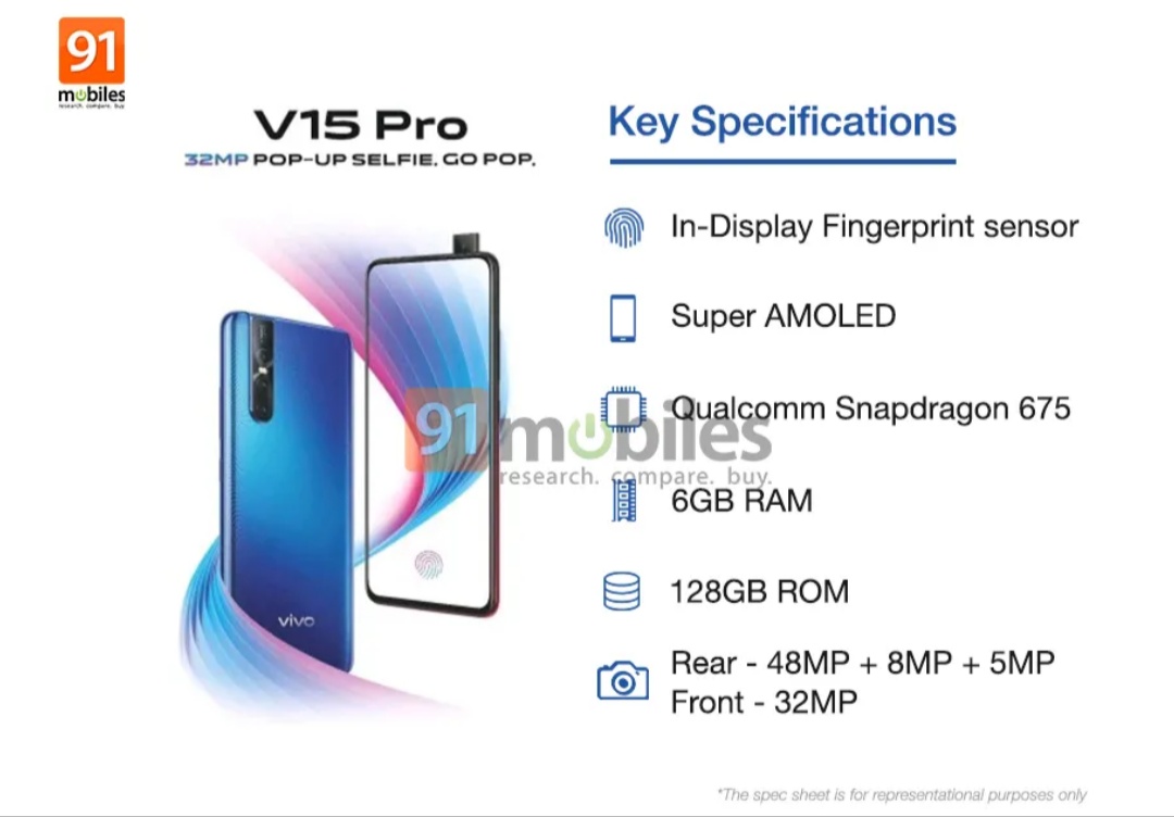 Furthermore, the poster reveals the Vivo V15 Pro will have an in-display fingerprint scanner and a Super AMOLED display. Unlike the Vivo NEX, the Vivo V15 Pro will have the selfie camera that slides out from the right.