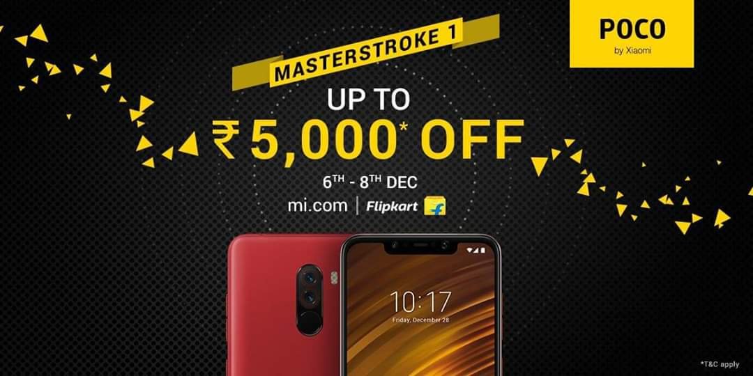 Xiaomi’s latest flagship phone Poco F1 is going to get discount of up to Rs 5000. This massive discount will be applicable from December 6 to 8. Buyers can get this discount on Mi.com and Flipkart.