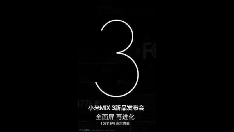 The launch date poster of the upcoming Mi Mix 3 has been revealed by AndroidPure and the poster is in Chinese language expect the date, that is 10/15.
